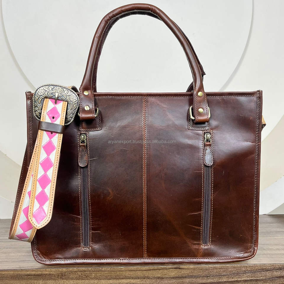 New Designer Large Capacity Hand Tooled Cowhide Leather Tote Bag with Pink & White Checkerboard Pattern Fringe Shoulder Handbags