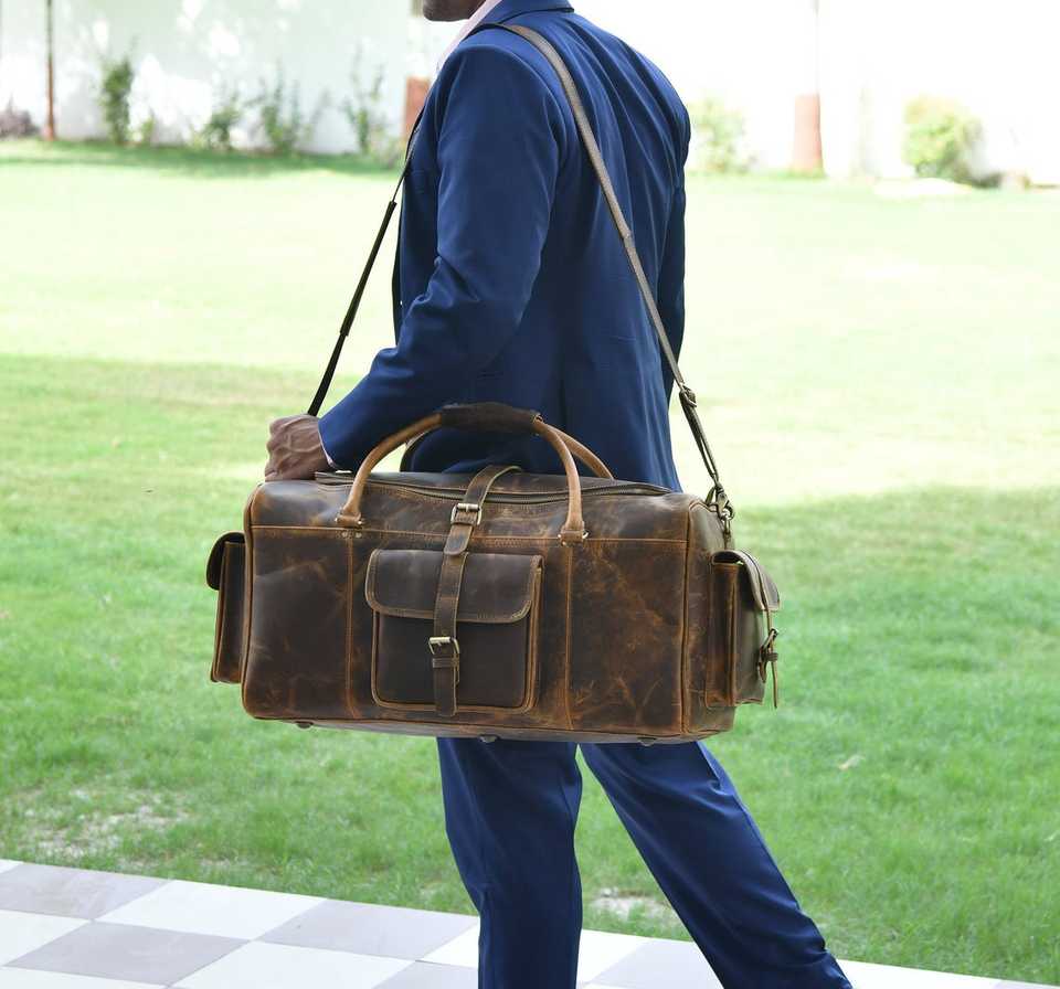 New Designer Large Genuine Leather Outdoor Duffel Bag High Quality Weekender Overnight Gym Sports Carry-on Travel Zipper Closure