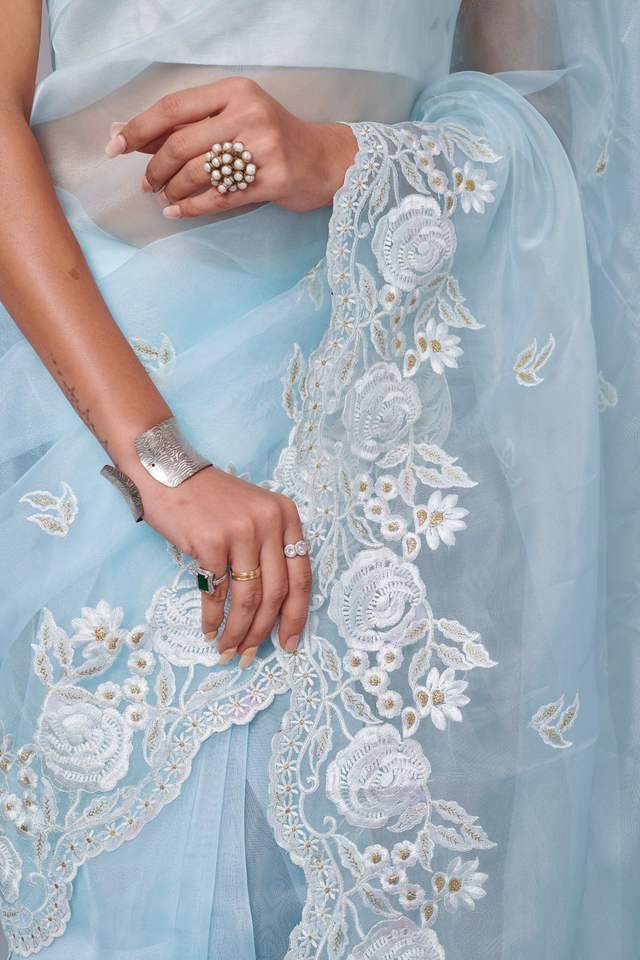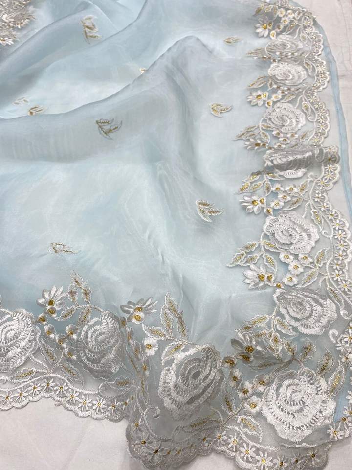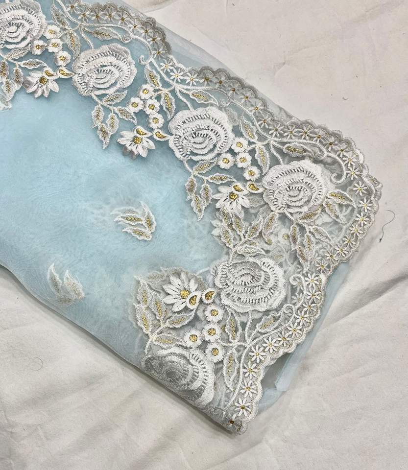 New Designer Organza Saree with Embroidery and Thread Work Lace Border Saree with Organza and Banglory Silk Blouse with Work