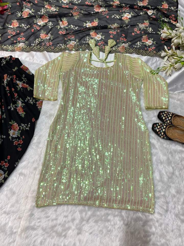 Product Name:Faux Georgette Sequence Work Top Printed Dhoti Salwar With Dupatta