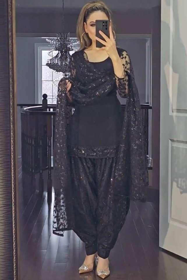 Product Name:Faux Georgette Sequence Work Top Patiyala Salwar With Dupatta