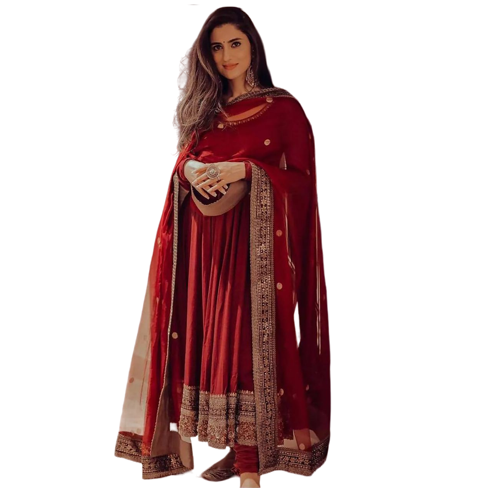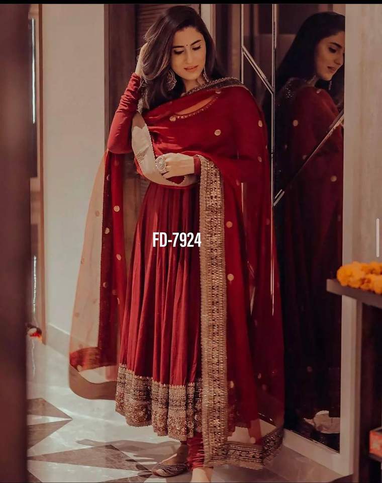New Designer Party Wear Look Silk With Embroidery Work Gown With Dupatta Indian Ethnic Wear Wedding Dress Anarkali Suit