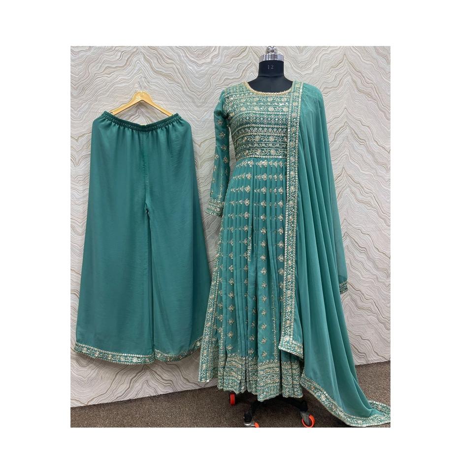New Designer Party Wear Look Silk With Embroidery Work Gown With Dupatta Indian Ethnic Wear Wedding Dress Naira Cut Long Kurti