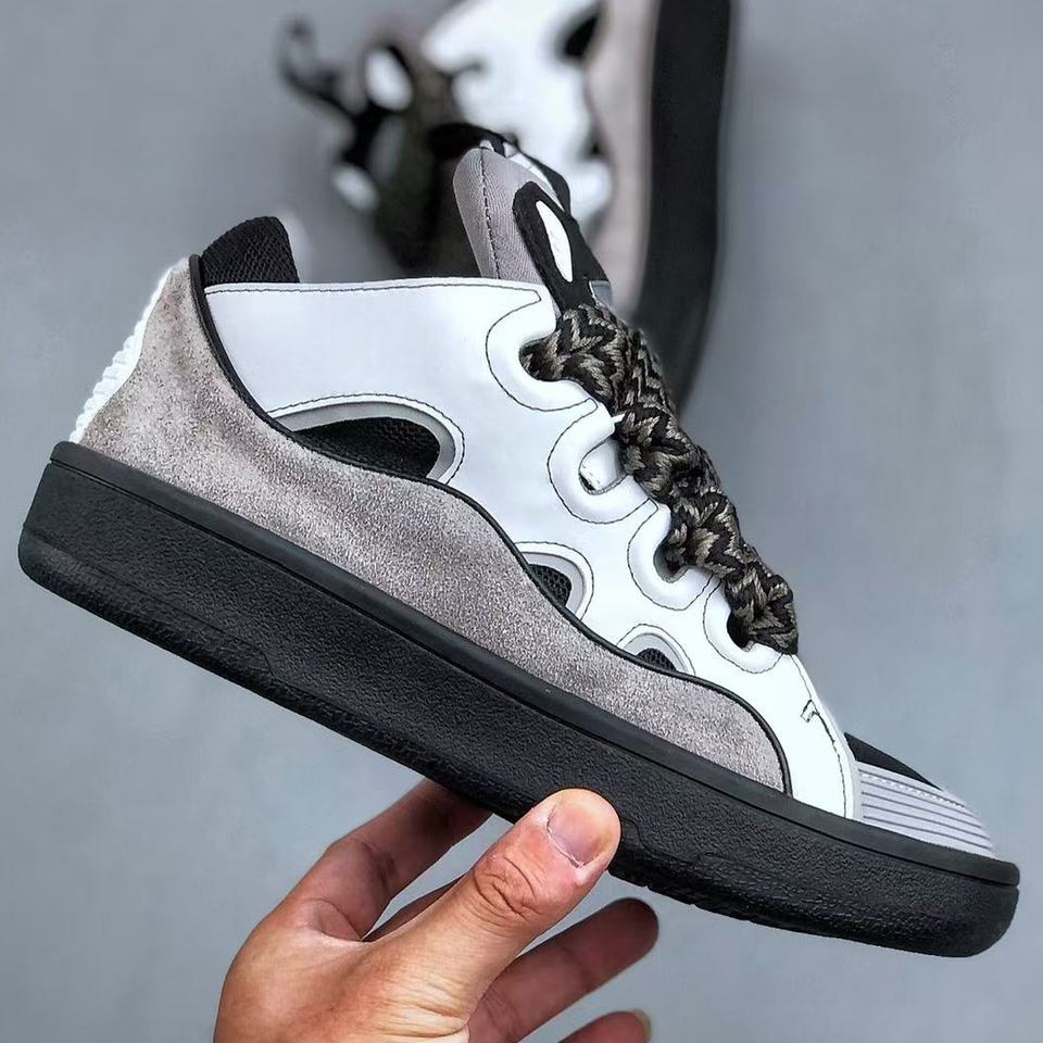New Designer Sporty Breathable Genuine Leather Shoes-Gray Casual Versatile Luxurious Elegant Retro Walking Shoes