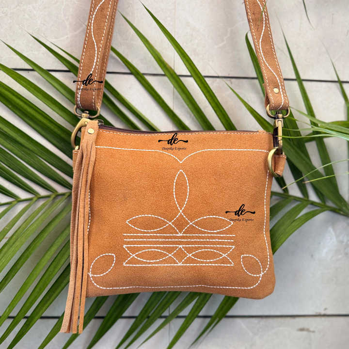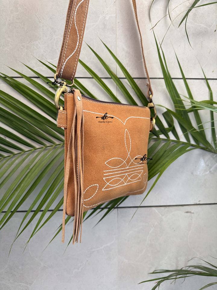 New Designer Suede Leather Western Style Boot Stich Sling Bag Handbag Hot Sale Bohemian Women's Multi Uses Handbag