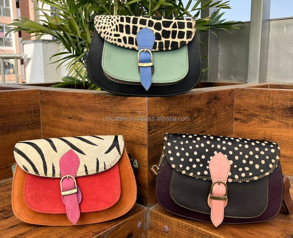 New Designer Western Animal Print Recycled Leather Handbag Multi Colored Purse for Women's Stylish Multi Uses Shoulder Sling Bag
