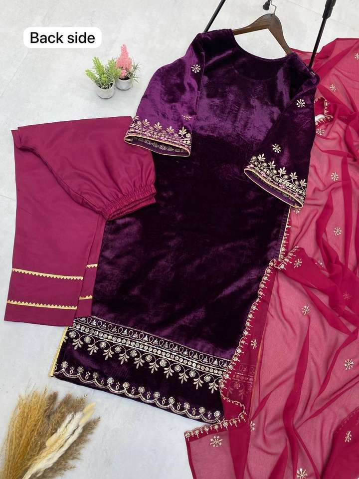 Product Name:Viscose Velvet Sequence Embroidered Top Bottom And Dupatta