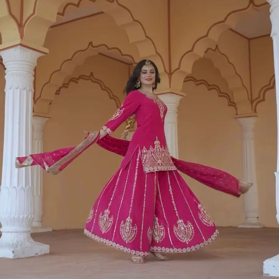 Product Name:Chinon Silk Sequence Embroidery Work Top & Sharara With Dupatta