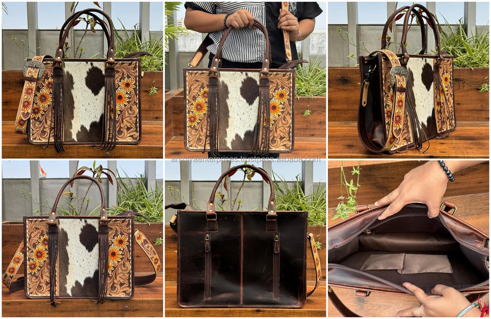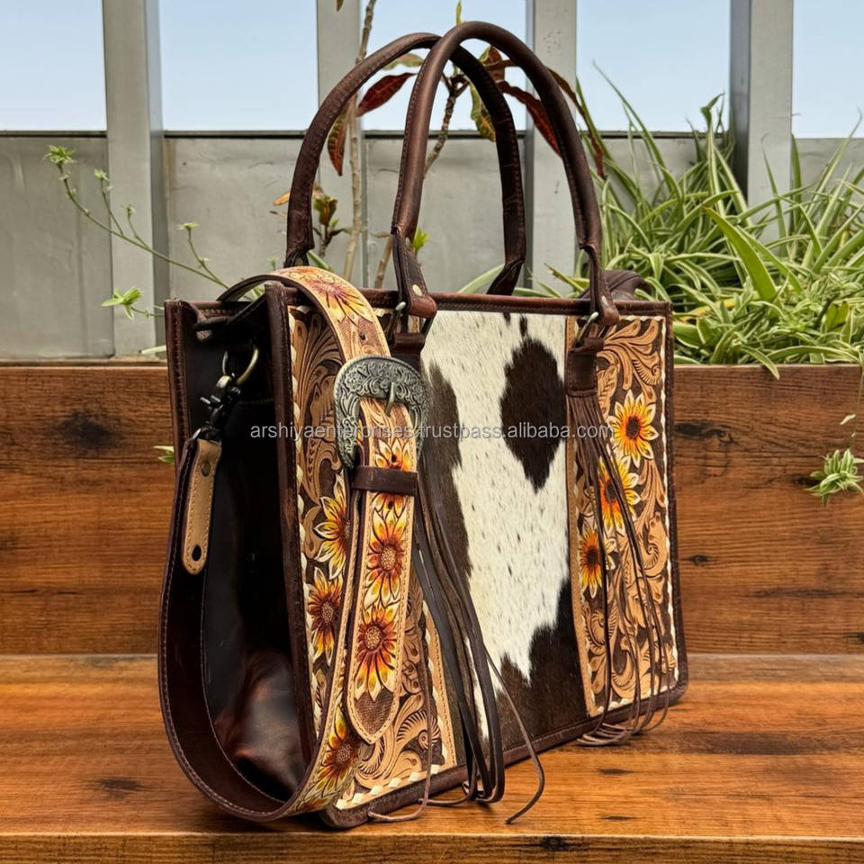 Product name:Hand Tooled Cowhide Leather Fringe Tote Bag