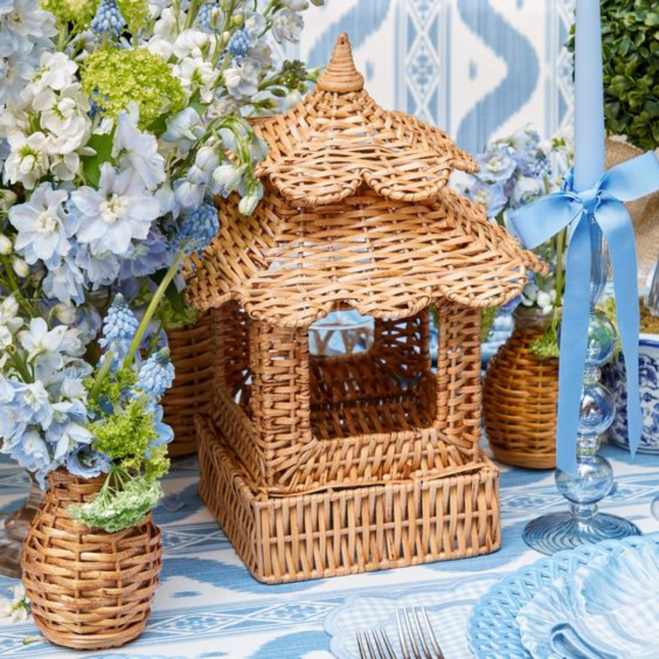 New Designs 2024 Handwoven Rattan Pagoda Lantern Vietnam Wholesaler Rattan Lantern Cover for Table Decoration