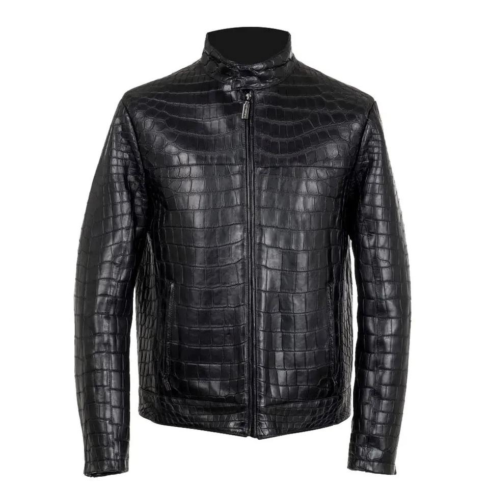 New Designs Breathable Customized Slim Fit Leather Men Jacket Black Casual Cotton Body OEM Men's Black Leather jacket for men