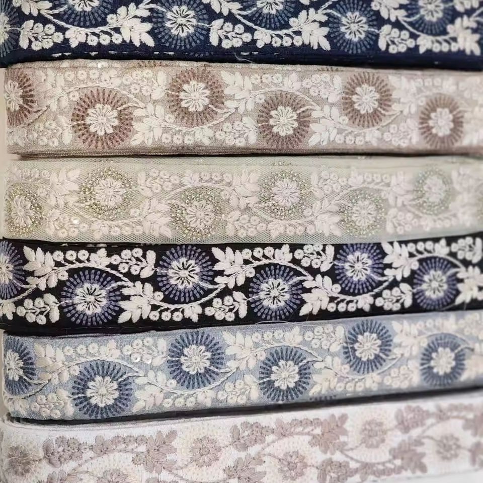New Designs Manufacturer Customized Gold Lace Trim 3D Flower Embroidery Trimming Lace Lace With Beads