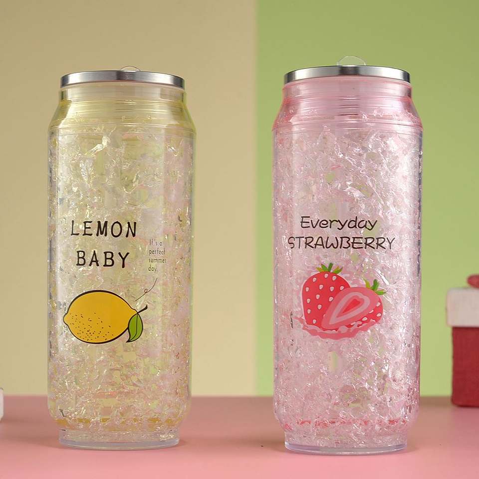 New Double Plastic Straw Good-Looking Summer Crushed Creative Cans Ice Korean Style Fruit Cup