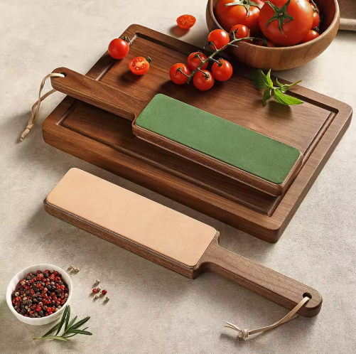 New Double Sided Multi-Grit Wooden Knife Sharpener with Walnut Handle Honing Polishing Kitchen Tool MD Brand Model MD-R153