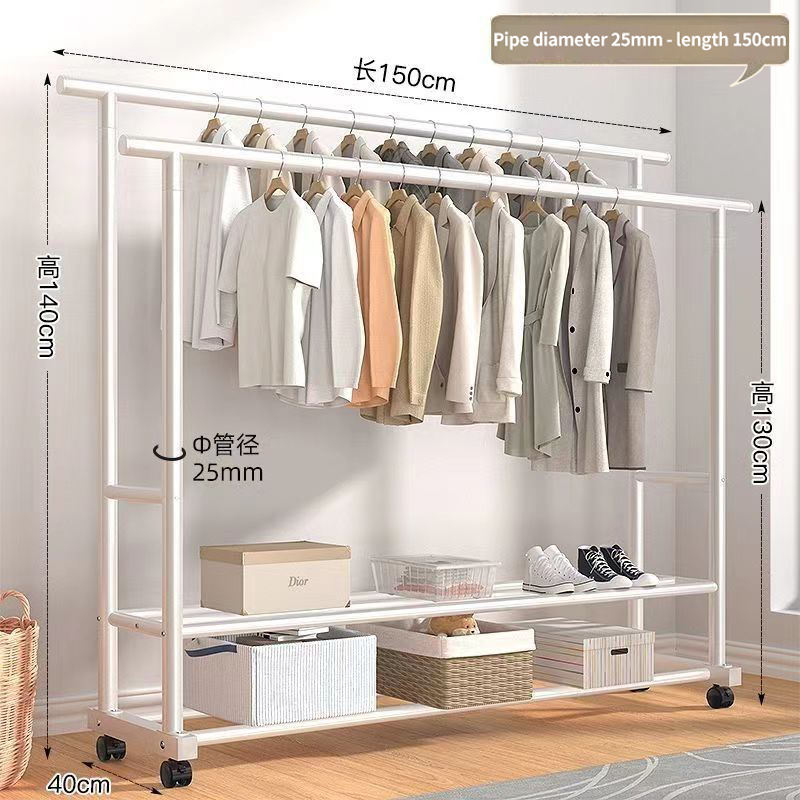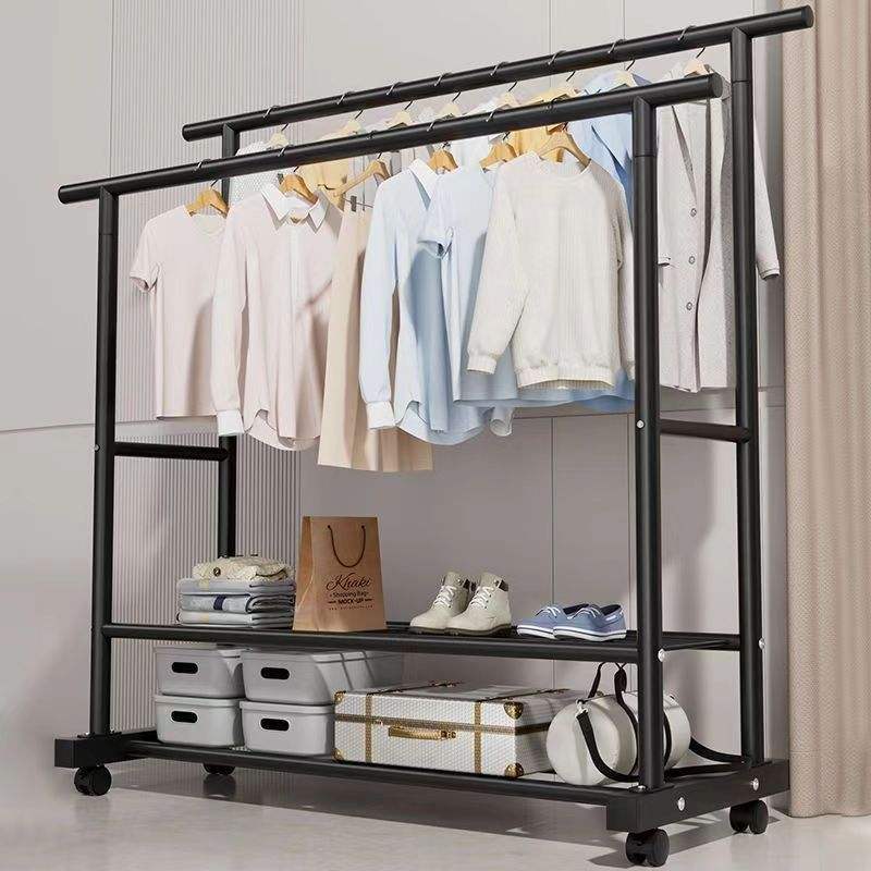 New Double-Tiered Metal Coat Stand with Custom Thickness Portable Cloth Rack Space Saving Clothes Hangers Bathroom Living Room