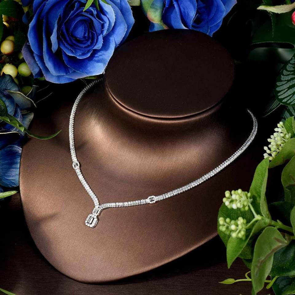 New Dubai Jewelry Sets Square Design Women Bridal Necklace Earring Set Cubic Zirconia Femme Ladies Wedding Accessories S-314