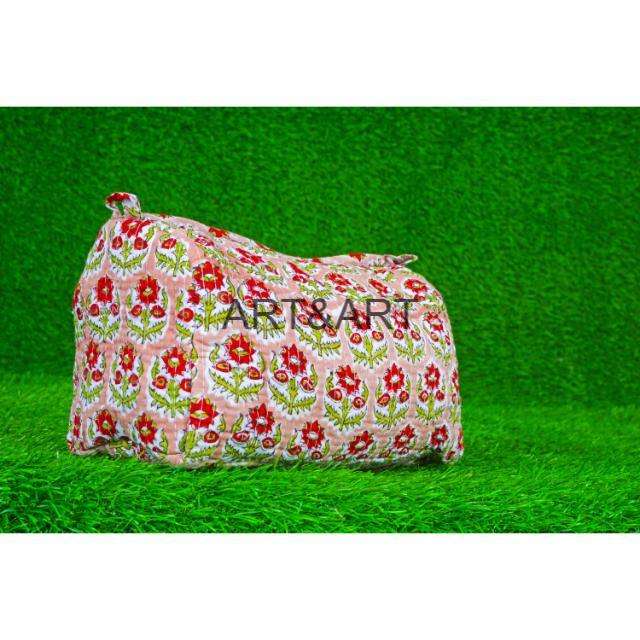 New Durable Fashion Cotton Fabric Quilted Block Printed Large for Bag Waterproof Washable Makeup Bags Travel Storage Zipper