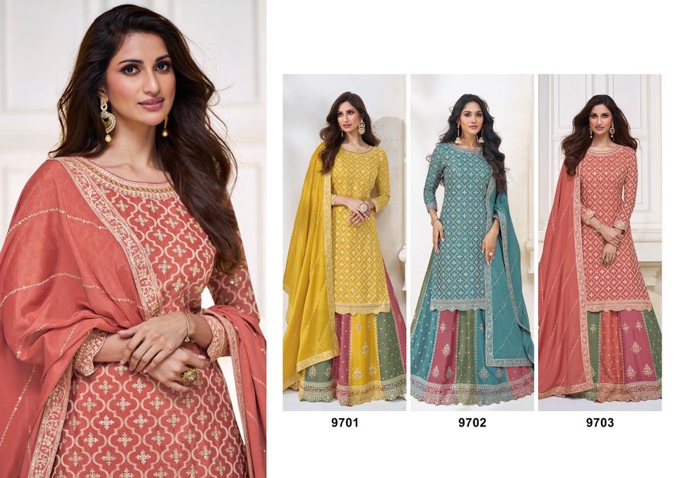 Product Name:Pure Chinon Heavy Embroidery Top Palazzo And Dupatta