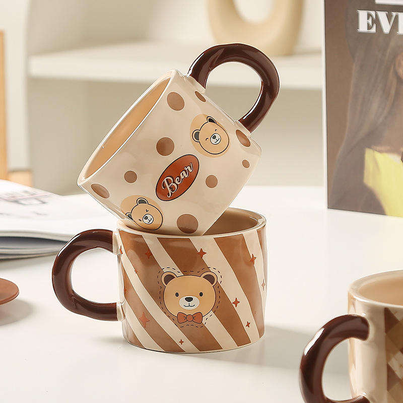 New Eco-Friendly 430ml Cartoon Cute Ceramic Bear Mug with Spoon Back to School Couple Water Cup 3D Bear Lid Breakfast Mugs