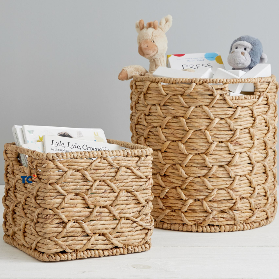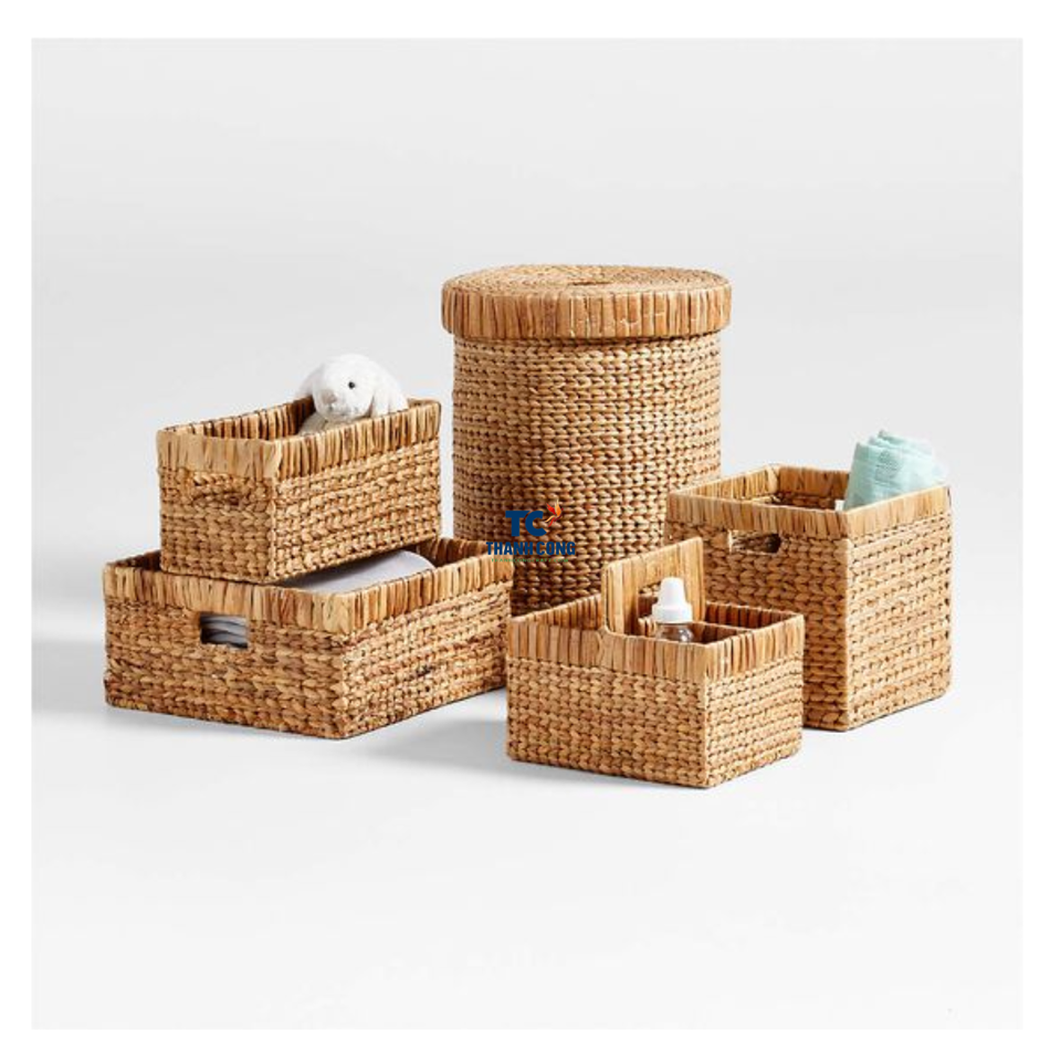 New Eco-friendly Material Handmade Storage Rectangle Baskets Custom Natural Woven Rustic Water Hyacinth Basket Made in Vietnam