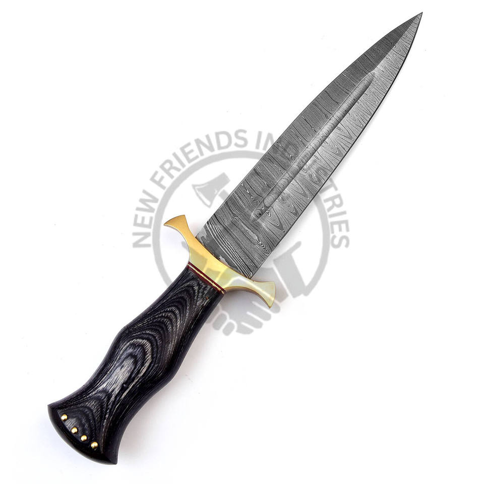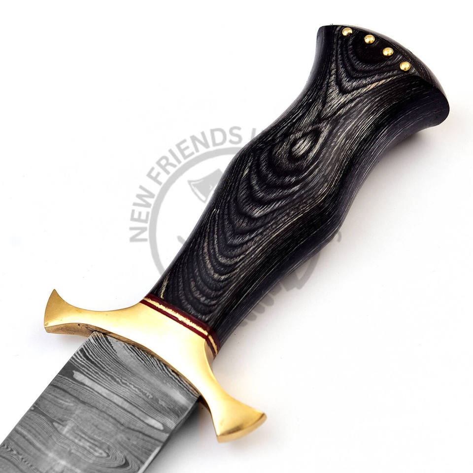 New Edition Customizable Damascus Steel Double-Edged Ceremonial Dogger Hunting Knife Wood Handle Camping Outdoor Survival Knife
