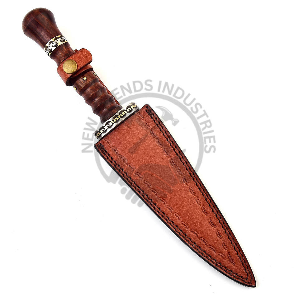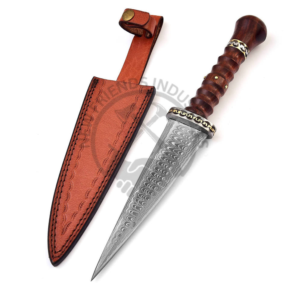 New Edition Customizable Medieval Inspired Spiral Wood Handle Damascus Steel Double Edge Dogger Knife Outdoor Hunting Knife