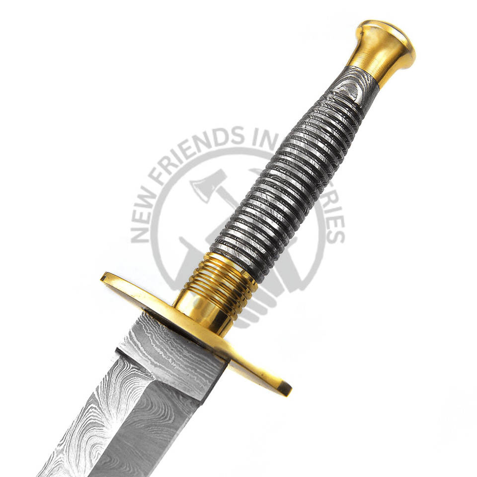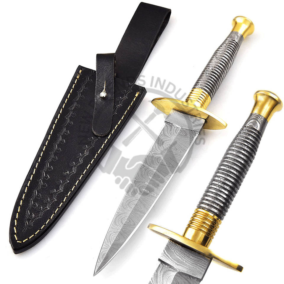 New Edition Handmade 12" British Commando Damascus Steel Knife w/Brass Guard Handle Best Camping Knife Outdoor Hunting Knife
