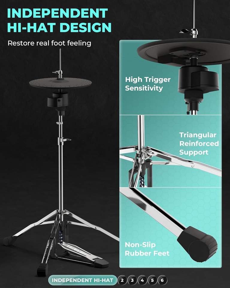 New Electronic Drum Set with 4 Quiet Meshh Pads, Hi-Hat and Kick Pedal