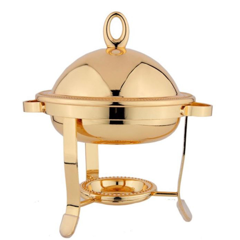 New Elegance Round Food Server Chaffing Dish Made of Stainless Steel Hammered With Top Lid Chaffing Dish at Lowest Price