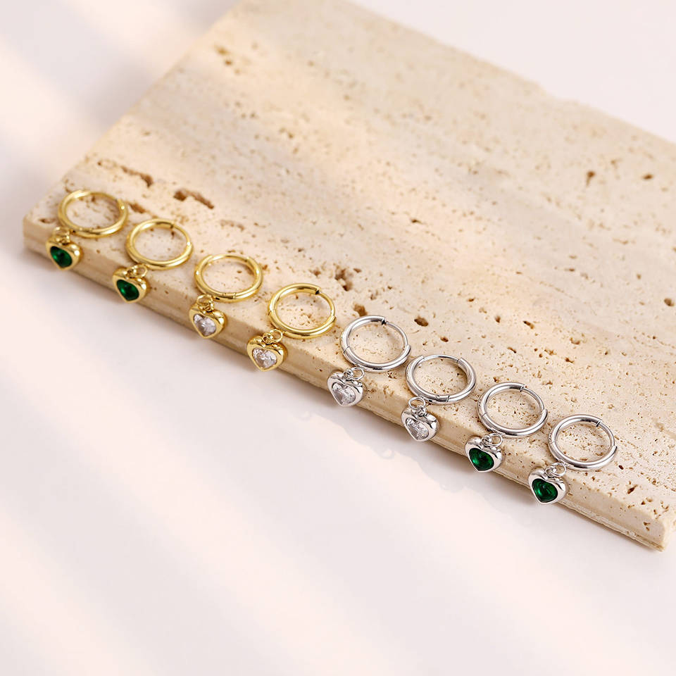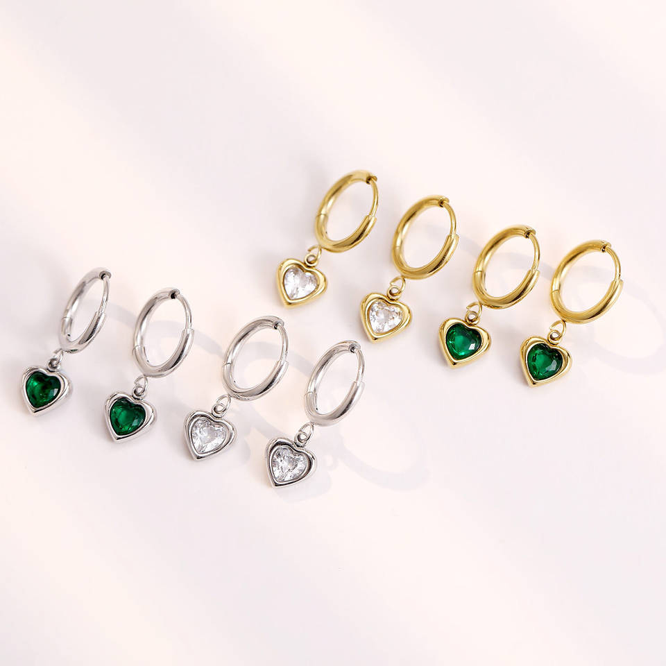 New Elegant Dainty Fashion Women Jewelry Stainless Steel Gold Plated Green Diamond Cubic Zirconia Heart Drop Earrings