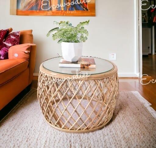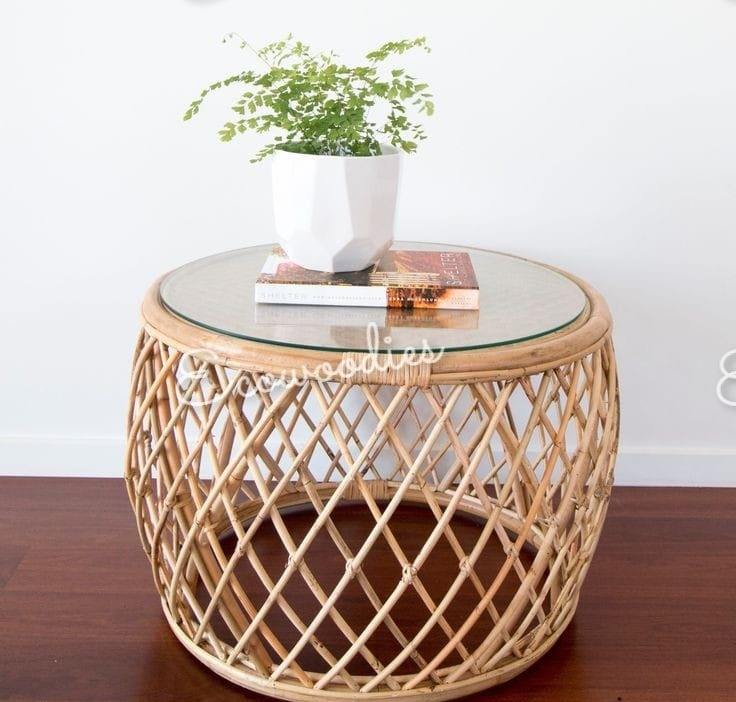 Style:Vintage Cane Rattan Coffee Table Round End Side Stool
