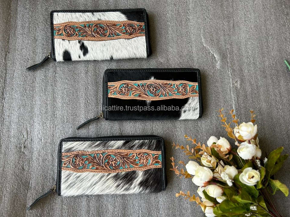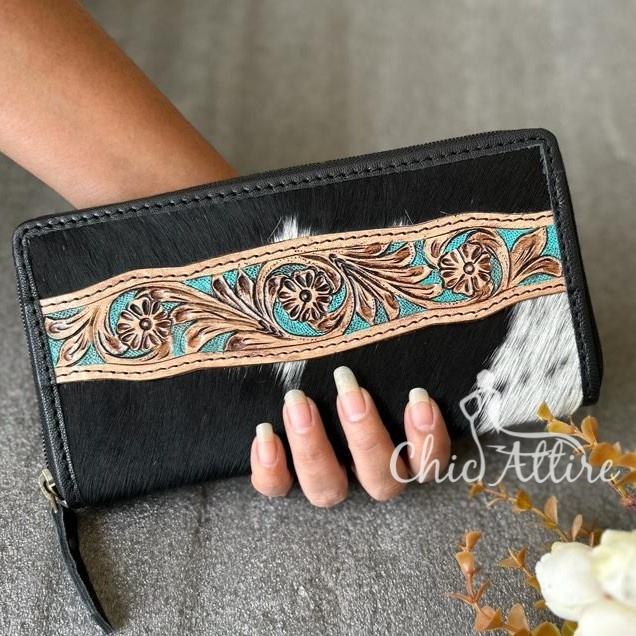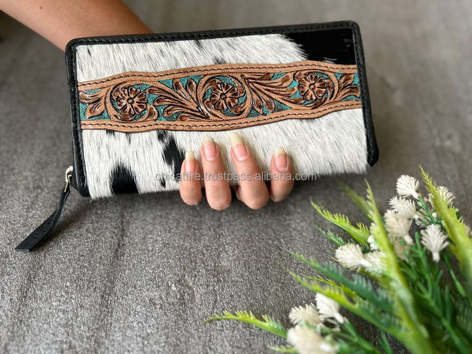 Product name:Western Style Hair On Hide Tooled Fur Leather Clutch