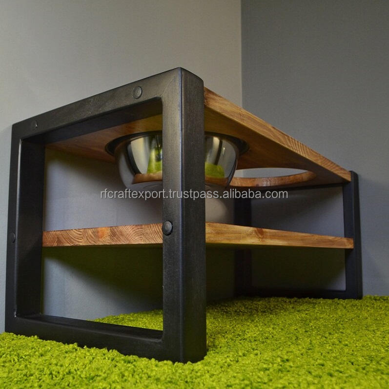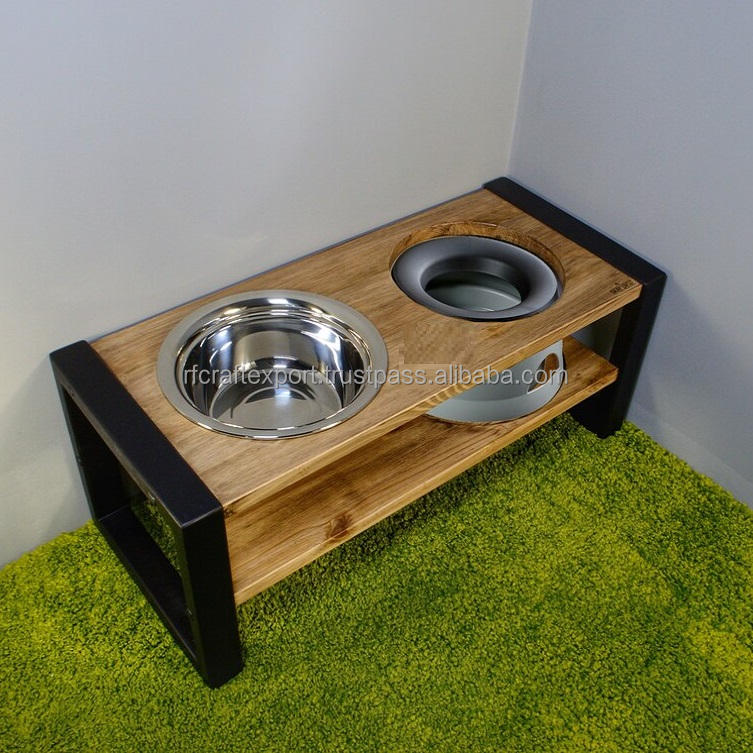 New Elevated Wooden and Iron Dog Bowl Stand Raised Food & Water Feeder for Large Medium & Small Dogs for Pets