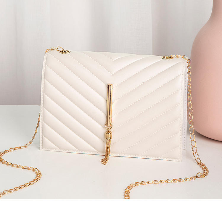 New Embroidered Messenger Bag Simple Tassel Chain PU Candy Custom Tote Bag Ladies Fashionable Square Small Bag
