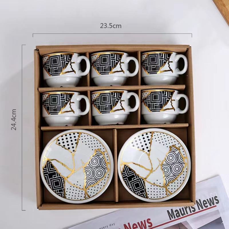 New European 12Pieces Ceramic Coffee Tea Set Ceramic Coffee Mug Set Middle East Coffee Mug 6 Cups 6 Saucers Espresso Cups