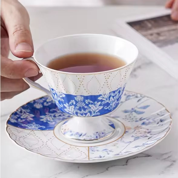 New European Deluxe Floral pattern Afternoon Tea Ceramic tea cup and saucer set