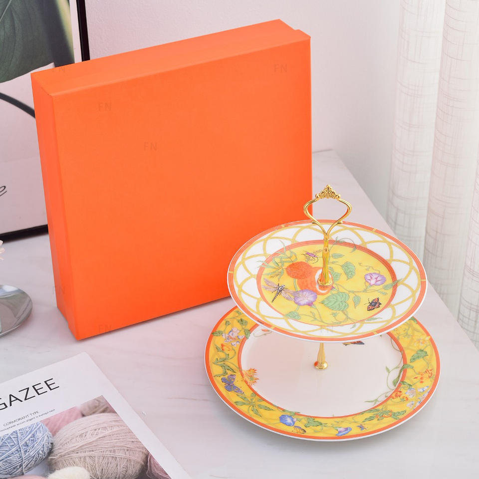New European Luxury Bone China 2-layer Cake Plate for Afternoon Tea
