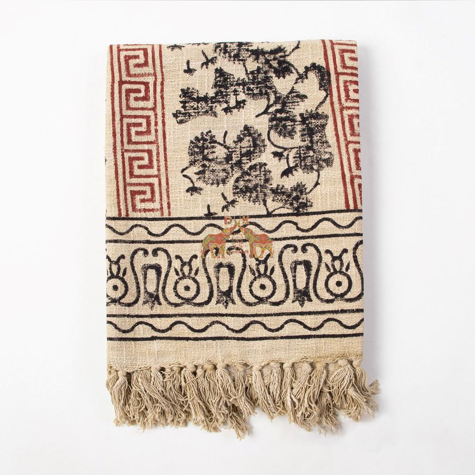 New Exclusive Luxury Floral Cotton Custom 100% Woven Throw Blanket Floral Handmade Hand Block Printed Throws Sofa Cover Throws