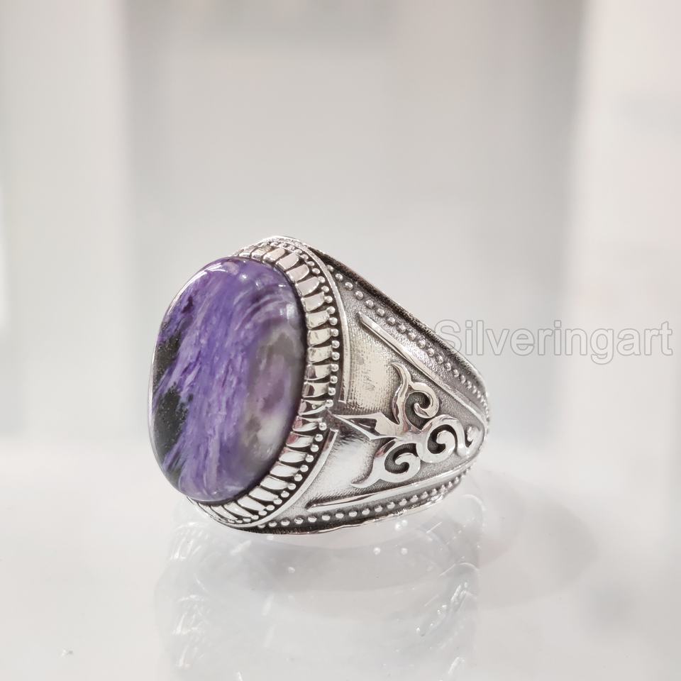 New Exclusive Mens Ring Natural AAA Charoite Gemstone Birthstone Ring All Sizes Ottoman Eastern Jewelry 925 Sterling Silver Ring