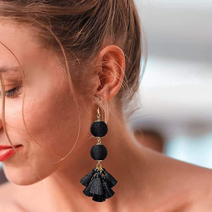 New Exquisite Stylish Color Women Fashion Handmade Bohemian Hoop Tassel Earrings Pairs-Multicolor Anniversary