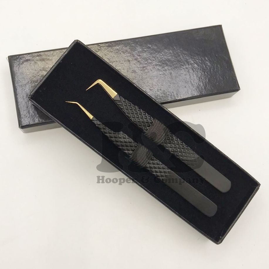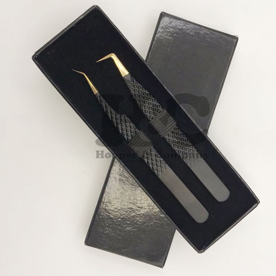 Tweezer mink Handmade Solid Black Eyelash Tweezers Slanted Gold Tip Low Price Sustainable OEM ODM Eyelash Extensions tweezer