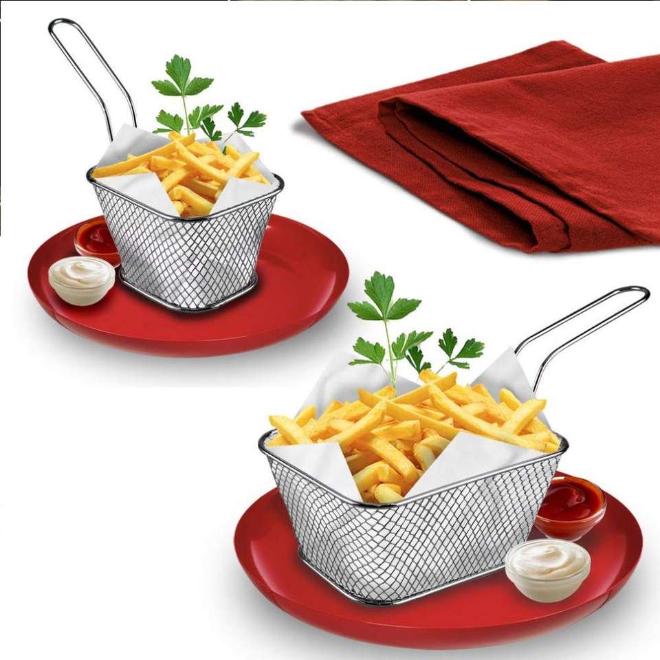 New Factory Arrival Customized Logo Available Kitchen Square Food Chips Popcorn Serving Stainless Steel Mesh Silver Basket
