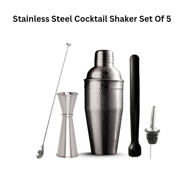 New Factory Arrival Metal Cocktail Shaker Making Set Bartender Kit of 5 Including Jigger Bar Spoons Muddler Pourer