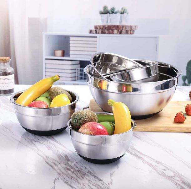 New Factory Arrival Stainless Steel Salad Mixing Bowl Baking Tools with and Without Lid Silicone Non-slip Bottom