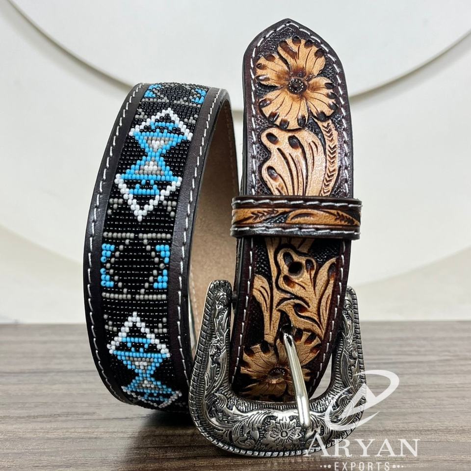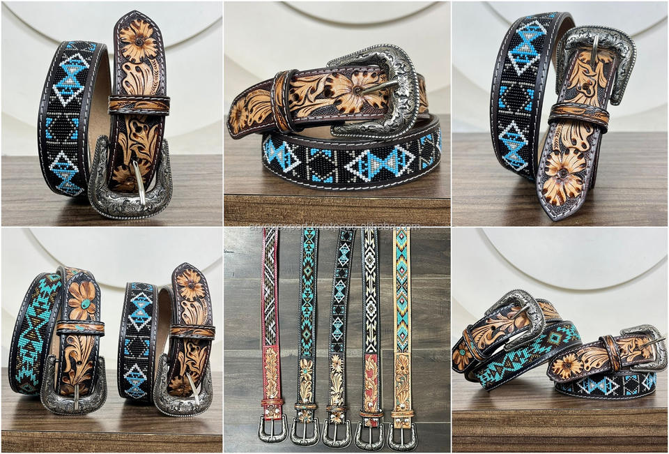 Product name:Hand Tooled Leather Beaded Pin Buckle Belt