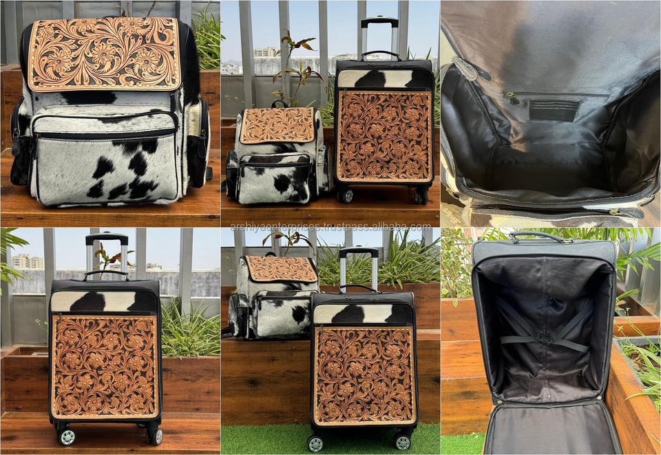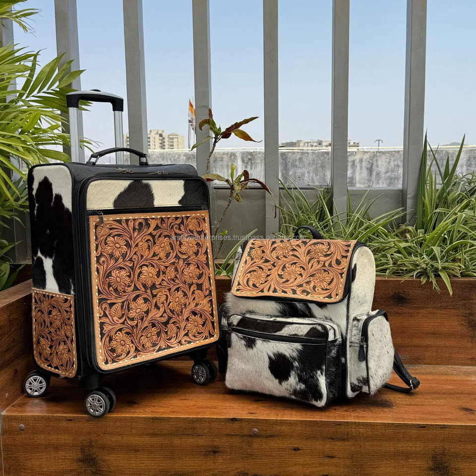Product name:Hand Tooled Cowhide Leather Travel Luggage Set