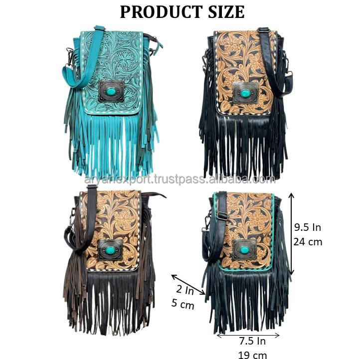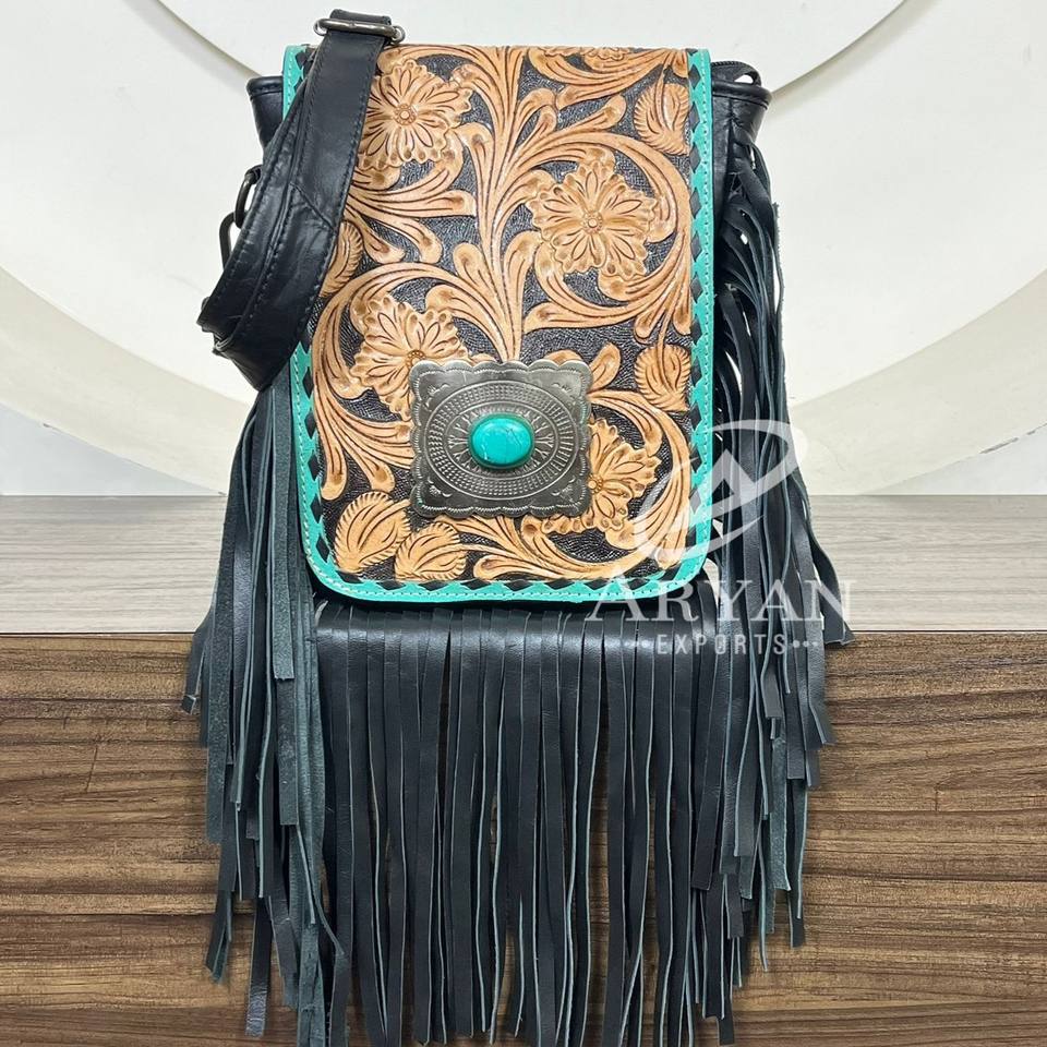 Product name:Hand Tooled Genuine Leather Fringe Crossbody Bag
