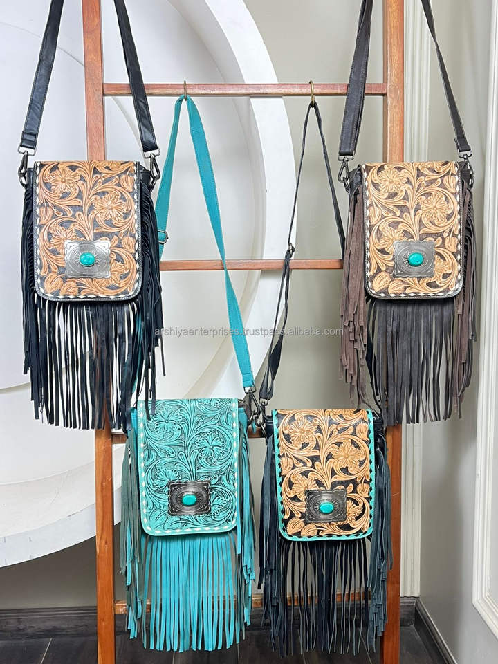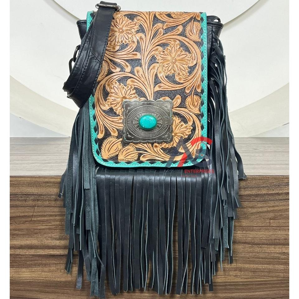 Product name:Hand Tooled Genuine Leather Fringe Crossbody Bag