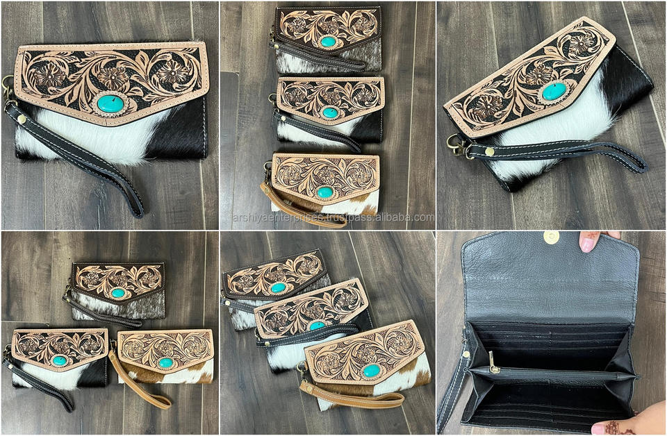 Product name:Hand Tooled Cowhide Leather Wristlet Wallet