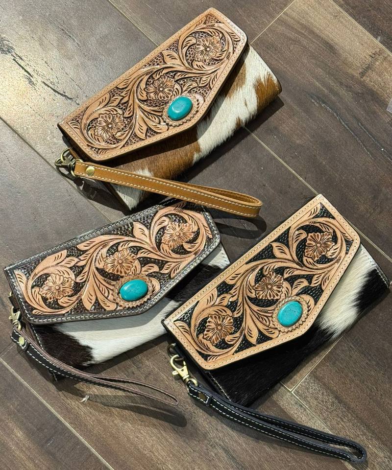 Hand Tooled Cowhide Leather Wristlet Wallet